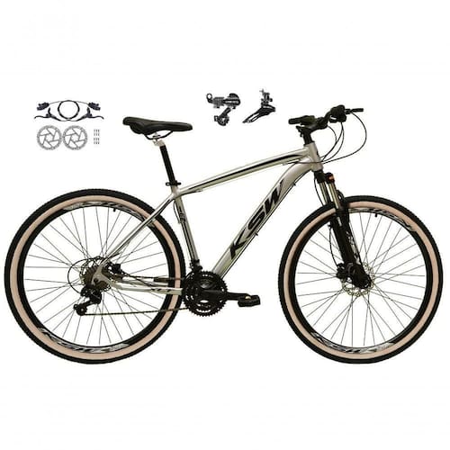 Bicicleta Aro 29 Ksw Xlt 24v K7 Câmbios Shimano Freio Hidráulico Garfo Trava Pneu Faixa - Prata Tam.21