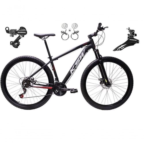 Bicicleta Aro 29 Ksw Xlt 24v K7 Câmbios Shimano Freio Hidráulico Garfo Trava - Preto/vermelho/branco Tam.19