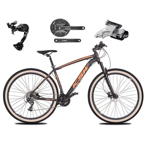 Bicicleta Aro 29 Ksw Xlt Alívio E Altus 27v Freio Hidráulico Garfo Trava Pneu Faixa - Preto/laranja Tam.15
