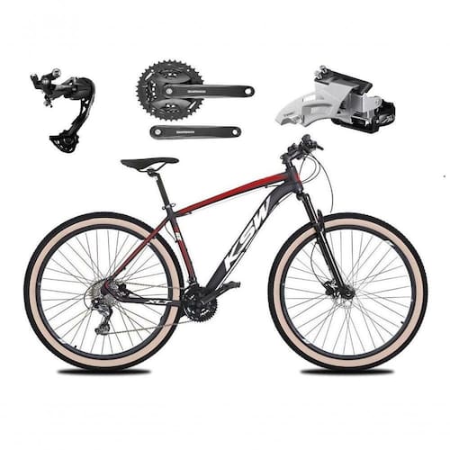 Bicicleta Aro 29 Ksw Xlt Alívio E Altus 27v Freio Hidráulico Garfo Trava Pneu Faixa - Preto-vermelho-branco Tam.17