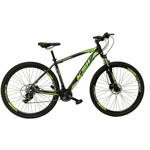 Bike aro 29 em alumínio, nova na caixa a pronta entrega, produto com ótima qualidade e acabamento, possui 24 marchas com sistema de alavancas rapid fire que a cada clique uma marcha é trocada, garfo com suspensão, sistema de freio a disco mecânico, câmbio dianteiro e traseiro Shimano Tz. Bicicleta pré montada, vai precisar apenas fixar a roda dianteira, guidão, selim e pedais. Segue abaixo características da bike: Quadro 29 ksw xlt em alumínio / Garfo 29 suspensão com Trava no Ombro e regulagem / Suporte do guidão em alumínio preto / Guidão 31.8mm em alumínio preto / Canote do selim 27.2 s/carrinho / Selim Sport preto / Abraçadeira do Selim alumínio Preto / Aros Aero Parede dupla reforçado / Raios Pretos / Cubos Pretos Aço / Pneus 29 cravudos / Movimento central selado rolamentado / Freios a disco Mecânicos com discos inox 160mm / Alavancas Semi-automáticas Rapid Fire / Câmbio Traseiro Index Shimano Tz / Câmbio Dianteiro Index Shimano Tz / Corrente Index 24v / Pedivela Aço Revestido / Pedal Plataforma Nylon preto / Roda Livre 8v index dourada(rosca)