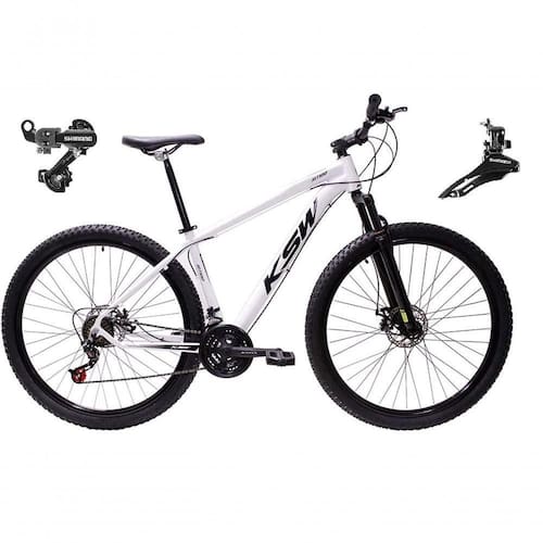 Bicicleta Aro 29 Ksw Xlt Alumínio 24v Câmbios Shimano Garfo Suspensão - Branco Tam.17