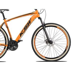 Bicicleta Aro 29 KSW XLT Alumínio Kit 24 Marcha Freio Disco - Cor: Laranja Neon+Preto / Tamanho: 21