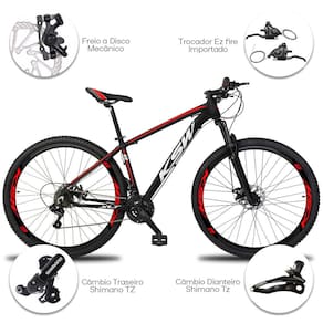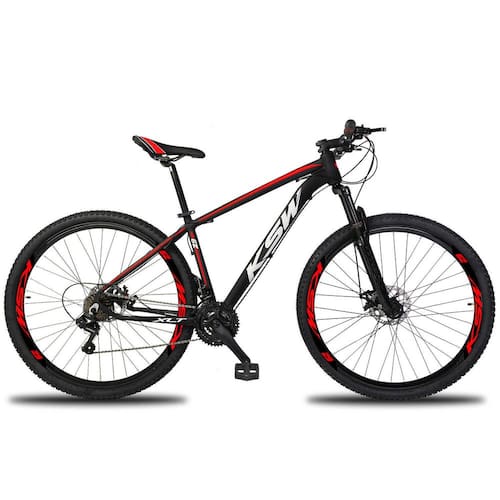 "Com um visual imponente e design ergonômico, é uma ótima opção para quem busca leveza, conforto, segurança e estilo em passeios ou trilhas leves.O quadro e pedivela em alumínio deixam a bicicleta mais leve, as 24 combinações de marchas oferecem um bom desempenho em todo tipo de terreno, o freio a disco proporciona mais segurança nas frenagens, e as várias combinações de cor agradam todos os gostos! Atenção bicicleta não recomendada para trilhas pesadas e manobras radicais."Quadro - Marca KSW - Aro 29 - QUADRO em ALUMÍNIO 6061 - TAMANHO - 15'', 17'', 19'' e 21''Suspensão Aro 29 PRETO 80MMAlavanca / Trocador Ez-Fire Engate Rápido 24V - (Imp.)Câmbio Dianteiro IMP. 3VCâmbio Traseiro IMP. 8VPedivela Reduzido Preto (Imp.) 24/34/42TCatraca / Roda Livre (Imp.) 8v IndexCorrente (Imp.) Index 8VFreio a Disco 160mm Preto - MECÂNICO (Imp.)Cubos p/ Disco 36f rosca Preto com blocagensAros Aero 36 Furos Folha Dupla Alumínio Preto com Adesivos PersonalizadosCâmara de Ar (Imp.) 29 x 1.95 Bico GrossoPneu (Imp.) 29x2.10 Cravo BaixoGuidão Mega Over Expandido Preto 31.8mmSuporte de Guidão / Mesa Preto em Alumínio 31.8mmAbraçadeira C/ Blocagem em Alumínio PretoCanote de Selim Preto em AlumínioBanco / Selim - SportMovimento Central Roller 122mm Preto Selado (Rolamento)Movimento de Direção Aheadset PretoEspaçador Aheadset Em Alumínio 3PÇManopla Preto Confort Plus- As fotos do anúncio são feitas com quadros do tamanho 17''.- A geometria do quadro (desenho) pode mudar conforme o tamanho escolhido alterando a inclinação do tubo superior quando quadro é 19 ou 21 deixando-o mais reto.- Pode haver alguma diferença de tonalidade entre a imagem e o produto real, por conta do tratamento de imagens e a calibração de cores do seu monitor.