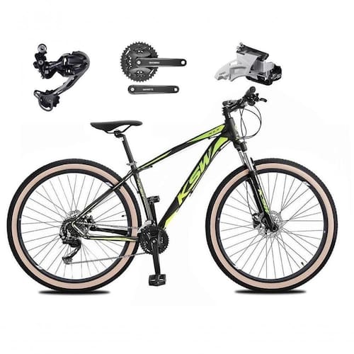Bicicleta Aro 29 Ksw Xlt Deore E Altus 27v Freio Hidráulico Garfo Trava Pneu Faixa Bege - Preto-verde Tam.19