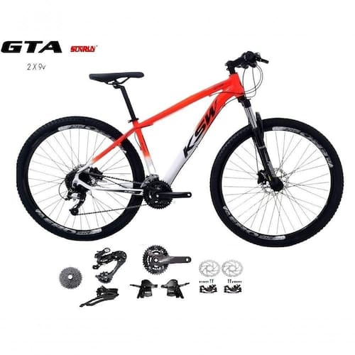 Bicicleta Aro 29 Ksw Xlt Kit 2x9 Gta Sunrun Freio Disco K7 11/36 Pedivela 24/38d Garfo Com Trava - Laranja/branco Tam.15