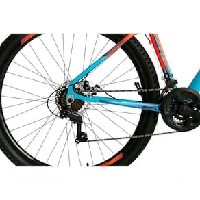 Bicicleta Aro 29 Ksx Sd7 21v Cabos Internos Alumínio Freios A Disco Garfo Suspensão Laranja Azul Tamanho 17