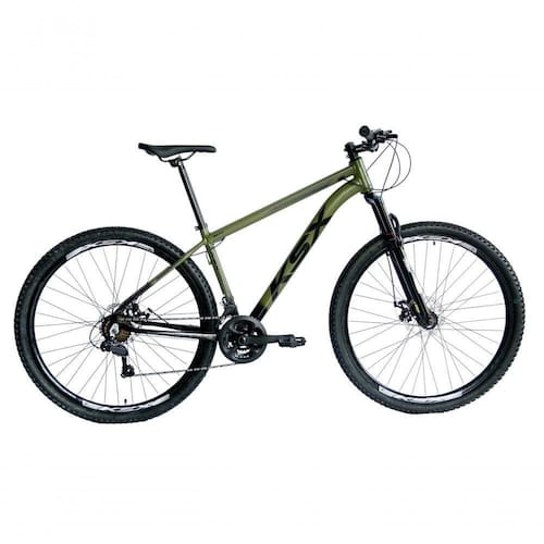 Bicicleta Aro 29 Ksx Sd7 21v Cabos Internos Alumínio Freios A Disco Garfo Suspensão Preto Verde Militar Tamanho 17