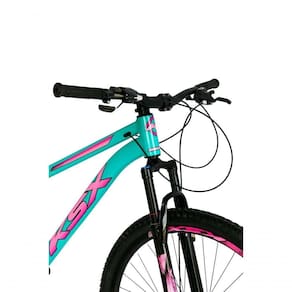 Bicicleta Aro 29 Ksx Sd7 21v Cabos Internos Alumínio Freios A Disco Garfo Suspensão Verde Tiffany Rosa Tamanho 15