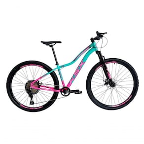 Bicicleta Aro 29 Ksx Sd7 Feminina 12v Garfo Com Trava K7 11/50 Freios Hidráulicos Kit 1x12 - Rosa/verde Tam. 15
