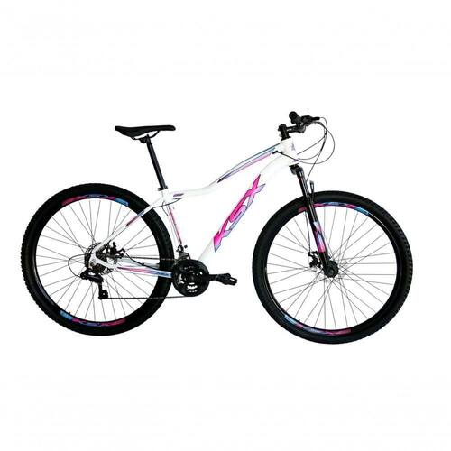 Bicicleta Aro 29 Ksx Sd7 Feminina 21v Cabos Internos Alumínio Freios A Disco Garfo Suspensão Branco Pink Azul Tamanho 17