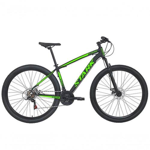 Tipo de Freio: Mecanico a Disco | Marchas: 24 | Guidão: Aço | Modelo e Composição do Freio: Freios a Disco 160mm | Material do Quadro: Alumínio | Modelo e Composição do Quadro: Stark 29 em Alumínio | Material do Aro: Aros 29 Aero Alumínio | Aro: 29 | Tipo de Alavanca de Câmbio: Rapid Fire 24V Importada | Modalidade: Mountain Bike | Suspensão: Dianteira | Marca e Modelo do Sistema de Câmbio: Câmbio Dianteiro e Traseiro Importado 24V | Canote: Aço Cor: Preto+verde