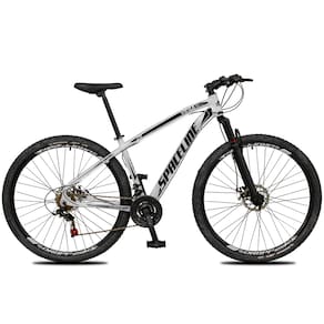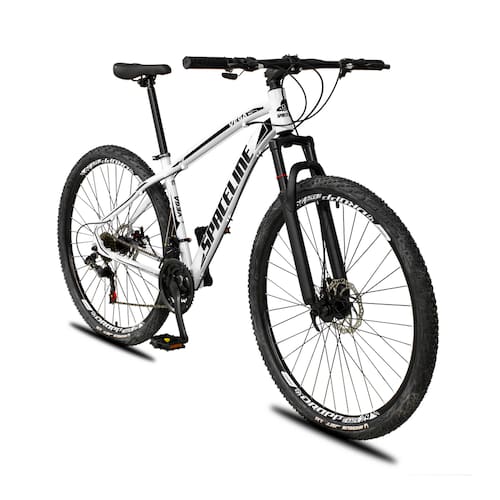 Bicicleta Aro 29 Spaceline Vega Alumínio 24v Freio a Disco Supensão MTB - 17-Branco+Preto