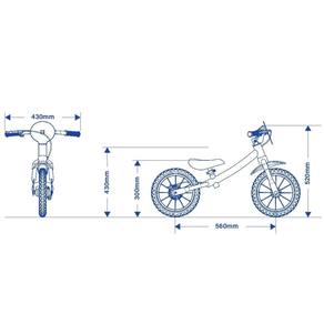 A bicicleta Balance Nathor conta com limitador de giro do guidão (garantindo mais segurança), pneus em E.V.A. (mais leves e antiderrapantes), freio traseiro a tambor e regulagem de altura do selim de PU.