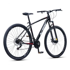 A suspensão dianteira auxilia na absorção de impactos em terrenos irregulares, e o pedivela triplo em aço garante maior eficiência durante o uso. Os pneus 29x2.10 oferecem boa aderência, e o selim ergonômico MTB proporciona conforto em pedaladas prolongadas.