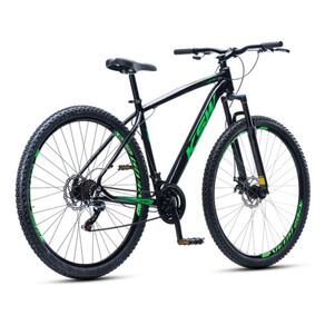 A suspensão dianteira auxilia na absorção de impactos em terrenos irregulares, e o pedivela triplo em aço garante maior eficiência durante o uso. Os pneus 29x2.10 oferecem boa aderência, e o selim ergonômico MTB proporciona conforto em pedaladas prolongadas.