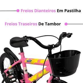 Bicicleta bike infantil kids aro 16 suporta até 50 kg Cor: rosa Proporcione momentos inesquecíveis para as crianças com a bicicleta infantil aro 16, ideal para os pequenos aventureiros que estão aprendendo a pedalar. Com um design moderno e cheio de estilo, essa bicicleta oferece conforto, segurança e muita diversão estrutura resistente produzidas em aço carbono de alta qualidade, garantindo durabilidade e estabilidade. A bike conta com rodinhas laterais removíveis, perfeitas para auxiliar no aprendizado e oferecer mais segurança. Com freios eficientes - sistema de freio v-brake para paradas seguras e controle total. Selim ajustável, ajuste a altura para acompanhar o crescimento da criança. Design incrível, cores vibrantes e adesivos personalizados para encantar os pequenos ciclistas. Garanta já a sua e veja a alegria brilhar no rosto dos pequenos Por que comprar com a imports - enviamos em até 24 horas; - produto de ótima qualidade; - produto testado e muito bem embalado para chegar em perfeito estado; - foco total no cliente. Informações importantes: - modelo: bicicleta infantil aro 16 - material: aço carbono, alumínio, nylon e plástico - suporta até 50 kg - indicado para crianças de 4-8 anos Informações sobre a bike: - quadro: aço carbono - garfo: aço carbono - canote selim: 190 mm - guidão: 16 downhill - suporte guidão: 21 mm - pneu: 16 x 1,75 - aro: alumínio 16 furos - cubo: 16 furos em aço - freio: v-brake nylon - corrente: aço grosso - pedal: nylon - acessórios: plate, roda lateral, cobre corrente. - registro inmetro: 009587/2024