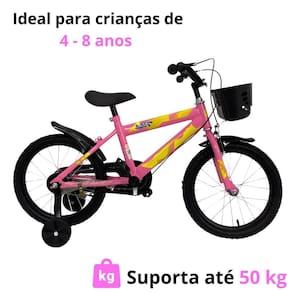 Bicicleta bike infantil kids aro 16 suporta até 50 kg Cor: rosa Proporcione momentos inesquecíveis para as crianças com a bicicleta infantil aro 16, ideal para os pequenos aventureiros que estão aprendendo a pedalar. Com um design moderno e cheio de estilo, essa bicicleta oferece conforto, segurança e muita diversão estrutura resistente produzidas em aço carbono de alta qualidade, garantindo durabilidade e estabilidade. A bike conta com rodinhas laterais removíveis, perfeitas para auxiliar no aprendizado e oferecer mais segurança. Com freios eficientes - sistema de freio v-brake para paradas seguras e controle total. Selim ajustável, ajuste a altura para acompanhar o crescimento da criança. Design incrível, cores vibrantes e adesivos personalizados para encantar os pequenos ciclistas. Garanta já a sua e veja a alegria brilhar no rosto dos pequenos Por que comprar com a imports - enviamos em até 24 horas; - produto de ótima qualidade; - produto testado e muito bem embalado para chegar em perfeito estado; - foco total no cliente. Informações importantes: - modelo: bicicleta infantil aro 16 - material: aço carbono, alumínio, nylon e plástico - suporta até 50 kg - indicado para crianças de 4-8 anos Informações sobre a bike: - quadro: aço carbono - garfo: aço carbono - canote selim: 190 mm - guidão: 16 downhill - suporte guidão: 21 mm - pneu: 16 x 1,75 - aro: alumínio 16 furos - cubo: 16 furos em aço - freio: v-brake nylon - corrente: aço grosso - pedal: nylon - acessórios: plate, roda lateral, cobre corrente. - registro inmetro: 009587/2024