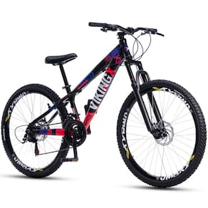 A Mountain Bike Vikingx Freeride Tuff 30 aro 26 é uma bicicleta projetada para resistência, desempenho e estilo. Com quadro em alumínio robusto, combina leveza e durabilidade, ideal para quem busca enfrentar diferentes tipos de terreno com confiança. Seu design moderno nas cores roxo e laranja agrega personalidade ao conjunto.