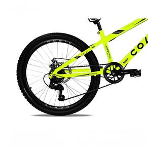 Bicicleta Colli Airon Aro 24 Com Freio A Disco 7v Amarelo COMPONENTES Abraçadeira de Canote: Abraçadeira com blocagem ( Canote do Selim: Canote do selim Freio: Kit freio a disco pinça/disco Freio (Cabo): Cabo de freio dianteiro 1.5x800mm Freio (Condute): Condute encapado câmbio Alavancas: Alavanca direita 7V sem manete Corrente: Corrente fina 1/2x3/32 Maçanetas: Maçaneta de nylon 26 Manoplas: Manopla diplomata Roda: Aro 24 aero 36F freio a disco traseiro c/ espaçador Movimento Central (1): Eixo centro ponta quadrada 5U com porca Movimento Central (2): Movimento central com colar Caixa de Direção: Movimento direção over ahead (34/34) Câmbio: Câmbio traseiro c/ gancheira Guidão (Espaçador): Espaçador de guidão de alumínio 10mm Guidão (Dimensões): Guidão x 620 mm 9 Câmara de Ar (Fita): Fita para aro 24 Câmara de Ar (Peça): Câmara de ar aro 24 Suspensão: Garfo 24 Airon/Londres freio a disco over - Pedivela: Pedivela 152mm single aço 36 dentes 24? Pedal: Pedal 9/16 preto Pneu: Pneu