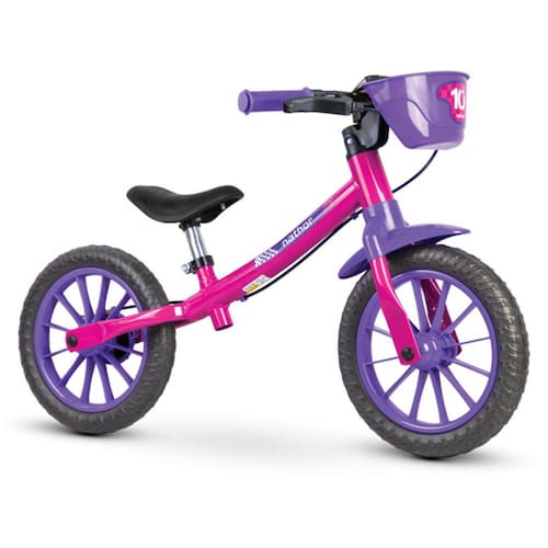 Bicicleta de Equilíbrio Infantil - Aro 12 - Balance Bike Rosa - Nathor: esse modelo de bicicleta de equilíbrio é indicada para crianças a partir de 02 anos de idade ou com altura entre 85 cm e 100 cm. O modelo perfeito para o mundo das bikes. A Bicicleta Balance não possui pedais ou rodinhas laterais, por isso é uma importante aliada na evolução da criança - já que foi pensada para auxiliar no desenvolvimento do equilíbrio, da coordenação bilateral e da percepção de espaço. DETALHES: • Com limitador de giro do guidão (garantindo mais segurança • Pneus em E.V.A (mais leves e antiderrapantes) • Freio traseiro a tambor e regulagem de altura do selim de PU INFORMAÇÕES: • Produto: Balance Bike Rosa Nathor Aro 12 • Marca: Nathor • Tipo: Bicicleta Infantil de Equilíbrio • Tamanho do produto (C x A x L): 82 x 52 x 43 cm • Peso do produto: 2.780 Kg • Tamanho da roda: 12 • Altura recomendada: 85 cm a 100 cm • Peso suportado: até 21 kg • Conteúdo: 01 Bicicleta e manual de instruções • Idade recomendada: para crianças de 02 a 05 anos de idade ESPECIFICAÇÕES: • Referência: 100900160005 • Código de Barras: 7898322521449 • Embalagem (A x L x P): 69 x 31 x 17 cm • Embalagem (Peso): 3.400 Kg • Material / Composição: - Quadro, garfo e guidão: aço carbono - Pneus: em E.V.A - Mesa de direção: nylon reforçado - Selim: em PU com regulagem de altura / abraçadeira: alumínio • Observação: o produto pode conter variação no modelo do aro • Registro: CE-BRI/INNAC 00407-01A NM 301/2004 • Certificado: Órgãos Autorizados - OCP´S (Organismos de Certificação de Produtos) BENEFÍCIOS DE ANDAR DE BICICLETA • Reduz a ansiedade e o estresse • Estimula a criatividade e imaginação • Estimula o equilíbrio e a coordenação motora • Colabora com a autoestima e a autoconfiança • Fortalece a massa óssea, articulações e músculos • Combate a obesidade e aumenta a resistência física • Estimula a atenção e o senso de direção e noção de espaço AVISO: • As imagens são meramente ilustrativas • Os pesos, tamanhos e medidas são aproximados • As cores e estampas dos produtos podem ter variações • As informações são de responsabilidade do fabricante ou fornecedor