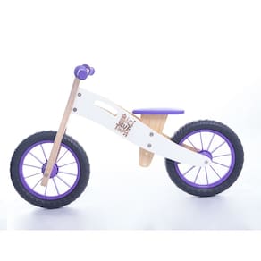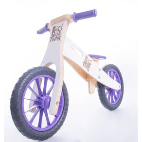 Bicicleta de equilíbrio MODELO NEVE ROXA 100% nacional e 100% de madeira reflorestada, com valorização de produtores locais.