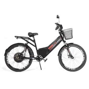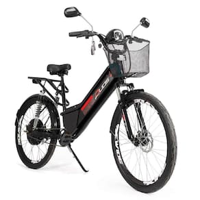 Bicicleta Elétrica - Confort Full - 800w - Preta - Duos Bikes: a Bicicleta Duos Confort Full Elétrica tem potente motor de 800w, capaz de atender diversas necessidades como: trabalho, transporte ou até mesmo diversão com a família. A Bicicleta Elétrica Confort Full Duos Bikes proporciona segurança, economia, conforto e muita praticidade. Produzida com matéria prima de alta qualidade, que garante resistência e muita durabilidade, mesmo em condições extremas! Você pode recarregar sua bicicleta elétrica em qualquer tomada. Detalhes desse modelo: • Com manete de freio • Botão de velocidade e botão de buzina • Compartimento de bateria e de modulo seguros • Selim • Bagageiro • Sinaleira a pilha • Paralamas dianteiro e traseiro • Refletor • Motor de 800w • Amortecedor dianteiro e traseiro • Sensor de pedal assistido • Tripé lateral • Freio a disco • Espelhinhos retrovisores • Cesta Informações: • Produto: Bicicleta Duos Confort Full 48v 15ah • Marca: Duos Bikes • Coleção: Duos Confort Full • Tipo: Bicicleta Elétrica • Categoria: E-bikes e MUV • Dimensões aprox. (C x A x L): 188 cm x 115 cm x 60 cm • Painel de Exibição: com indicador de nível de energia, velocímetro, painel de tensão de bateria e parada (P) • Segurança: Alarme sonoro com trava da roda traseira (Sistema antifurto inteligente) • Rodas / Pneus: Aro 26 - Alumínio Duplo • Altura Indicada (Min-Max): 1.50m a 2.10m • Autonomia Média: de 25 a 35 km por carga (A autonomia depende do peso do condutor, tipo de bateria, inclinação do terreno, auxílio dos pedais, velocidade média, calibragem dos pneus, etc.) • 03 níveis de velocidade: Eco / Normal / Power • Velocidade máxima: limitada a 32km/h (De acordo com a Resolução 996 art. 2° II Contran) • Peso máximo suportado: capacidade de carga é até 120Kg (para as especificações foi considerado a carga de 90Kg, caso o condutor/passageiro somados ultrapasse esse peso só alterará na autonomia descrita) • Farol: com LED • Pedais: Pedal assistido (pedal system) • Conteúdo: - 01 Bicicleta Elétrica - 02 Chaves de ignição - 02 Controles do alarme - 01 Carregador de bateria inteligente bivolt 110/220 - 04 Baterias 12v 15ah (já instaladas) • Tempo de carregamento: entre 06 a 08 horas (nunca deixe carregando mais que 08 horas) • Recomendação: acima de 18 anos de idade Especificações: • Referência: FULLPT • Código de Barras: 7906234243493 • Embalagem (C x A x L): 180 x 88 x 32 cm • Embalagem (Peso): 50 kg • Motor: 800w de potência • Bateria: selada 48V/15ah (04 baterias de 12v 15ah) • Freio: a disco • Material / Composição: - Manete em Alumínio - Aro 26: Alumínio - Guidão: Aço Reforçado - Pedal: Plataforma em alumínio tipo sueco - Quadro: Aço Rígido Observações: • A bicicleta é enviada pré-montada: a bicicleta segue revisada, mas por motivo de acomodação na embalagem para transporte ela não vai completamente montada. • A instalação e revisão final é de responsabilidade do cliente. Sugerindo que seja efetuada por uma oficina especializada • O tempo de carregamento é entre 06 a 08 horas (nunca deixe carregando mais do que 08 horas) • As baterias devem ser carregadas a cada 15 dias mesmo que não sejam utilizadas Aviso: • As imagens são meramente ilustrativas • Os pesos, tamanhos, pesos e medidas são aproximados • As cores e estampas dos produtos podem ter variações • As informações são de responsabilidade do fabricante ou fornecedor Ean: 7906234243493