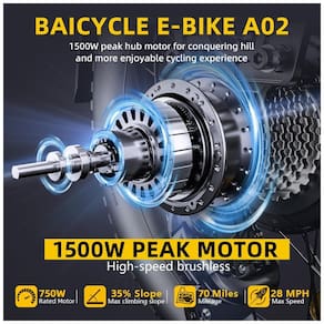 A bicicleta elétrica possui um motor sem escova de pico de 750W (1500W) e um câmbio de marcha de 7 velocidades, proporcionando uma condução suave e eficiente, ideal para enfrentar colinas íngremes sem esforço. Com um alcance máximo de até 120 km e uma velocidade máxima de 32 KM/H, a bicicleta suporta uma carga máxima de 120 kg. A estrutura de alumínio de classe aeronáutica e a classificação IP54 à prova d'água garantem leveza e resistência, tornando-a adequada para viagens sem esforço em qualquer ambiente.