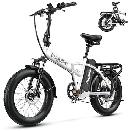 Condução segura e confortável: A bicicleta elétrica adota freio de desligamento automático EABS + freios a disco duplos dianteiros e traseiros para frenagem sensível. Ela foi projetada com forte desempenho off-road, força de frenagem confiável e alto fator de segurança. O garfo dianteiro e o canote de selim de alta resistência absorvem os solavancos de estradas longas e irregulares. Os pneus largos de 20" são antiderrapantes e à prova de furos, garantindo que você possa pedalar em estradas, neve, praias e estradas montanhosas acidentadas.