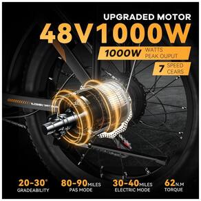 Motor potente com pico de 1000W: Com o suporte de um motor potente de 750 W (pico de 1000 W), ela pode atingir 48 km/h no modo de aceleração puramente elétrico, com um torque de até 65, e pode facilmente superar uma inclinação de 30 graus. As bicicletas elétricas para adultos oferecem potência potente, partidas mais rápidas e capacidades de subida aprimoradas, tornando-as adequadas não apenas para o deslocamento diário, mas também para ir à praia, escalar e viajar com amigos.