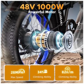 Motor potente com pico de 1000W: Com o suporte de um motor potente de 750 W (pico de 1000 W), ela pode atingir 48 km/h no modo de aceleração puramente elétrico, com um torque de até 65, e pode facilmente superar uma inclinação de 30 graus. As bicicletas elétricas para adultos oferecem potência potente, partidas mais rápidas e capacidades de subida aprimoradas, tornando-as adequadas não apenas para o deslocamento diário, mas também para ir à praia, escalar e viajar com amigos.