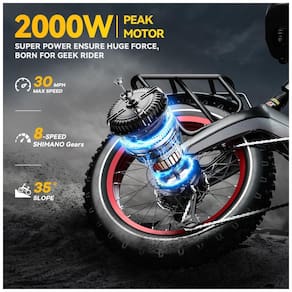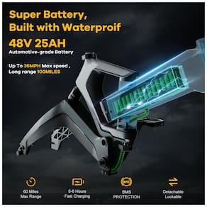 A poderosa Bicicleta Elétrica Cybervelo de 1000W (2000W de pico) está equipada com um motor brushless de alta velocidade e transmissão de 8 velocidades, proporcionando excepcional potência e torque. Atinge até 56 km/h, com uma autonomia de até 160 km. Seu motor é mais potente e eficiente, tornando subidas íngremes fáceis. Com uma bateria de lítio de alta capacidade de 48V 25Ah, é possível percorrer até 160 km com apenas 6 horas de carga. Ideal para longas viagens, aventuras de fim de semana ou trilhas off-road.