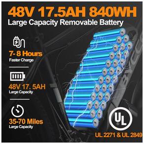The powerful motor allows you to easily reach a top speed of 34 MPH, enough to explore all kinds of rough terrain while cycling outdoors, and easily conquer various terrains such as beaches, mountains, snow, and city streets 48V 17