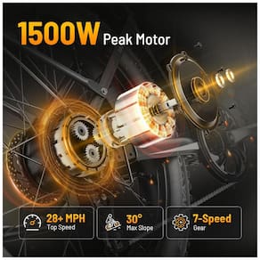 Desfrute de toda potência com a bicicleta elétrica Jasion EB5 MAX, equipada com um motor de pico de 1500W que atinge velocidades de até 45 km/h com facilidade. Supere subidas íngremes com facilidade, graças à sua capacidade robusta de escalada. Com uma bateria de 48V 15Ah, percorra até 104 km com assistência e 56 km no modo acelerador. O design removível e travável da bateria garante conveniência e segurança. Tenha total visibilidade com o display colorido, que mostra estatísticas em tempo real e oferece controle de cruzeiro. As luzes dianteiras e traseiras maiores proporcionam maior segurança, principalmente em condições de pouca luz. Com pneus largos de 26 x 4.0 polegadas, a EB5 MAX oferece excelente aderência em diferentes terrenos, enquanto o garfo de suspensão absorve impactos, garantindo conforto. Com capacidade para transportar itens essenciais, essa bicicleta é ideal para uso diário ou aventuras.