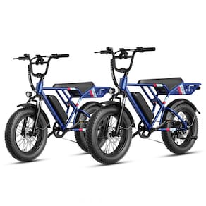 O kit Jasion RetroVolt Two Blue reúne duas bicicletas elétricas adultas com quadro em aço carbono de alta resistência e pneus largos 20 x 4 cm, indicadas para uso urbano e off-road leve, como ciclovias, ruas pavimentadas, estradas de terra, areia e trilhas moderadas. Cada bicicleta utiliza geometria de quadro único em tamanho grande, com suspensão dupla dianteira e traseira, oferecendo boa absorção de impactos, estabilidade e conforto em diferentes tipos de piso e condições de uso.