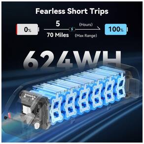 A alimentação elétrica de cada bicicleta é feita por bateria de íons de lítio 48V 13Ah, com energia aproximada de 624Wh, removível e recarregável em cerca de 5 a 6 horas com o carregador indicado. Em modo de pedal assistido em nível mais econômico, a autonomia pode atingir aproximadamente 80 km por carga, enquanto em modo totalmente elétrico a autonomia é menor, em torno de 35 km, variando conforme peso do usuário, relevo e modo de condução.