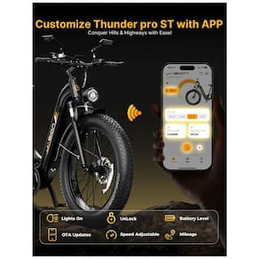 A bicicleta elétrica Jasion Thunder PRO ST preto obsidian é uma fat bike elétrica de alto desempenho para adultos, com pneus 26x4, quadro robusto e sistema de suspensão total projetado para uso em trilhas, estradas de terra e deslocamentos de longa distância. O motor brushless de 1200W contínuos com 2000W de potência de pico e torque de 115 N·m permite aceleração rápida e manutenção de velocidade elevada em subidas e terrenos irregulares.