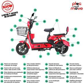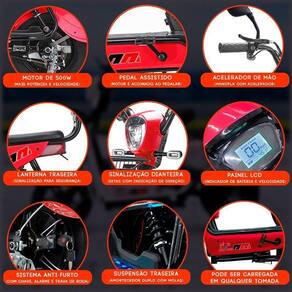 Bicicleta Elétrica - New Classic PAM - 500w - Vermelha - Plug and Move: Alto desempenho e design diferenciado fazem da New Classic PAM a bicicleta elétrica ideal para o dia a dia. Equipada com um motor elétrico potente de 500 watts e, também, manopla com acelerador e sistema de aceleração por pedal assistido. Compacta, sustentável e econômica. Vem com acessórios indispensáveis como painel indicador de energia e velocímetro, retrovisores e setas que sinalizam a mudança de direção.A Bicicleta Elétrica New Classic PAM é boa?- A New Classic PAM é uma boa alternativa para o dia a dia- Modelo inteligente e versátil para chegar ao seu destino- Compacta, sustentável e econômica- Ajuda a otimizar o seu tempo: com ela você consegue fugir e reduzir o tempo no trânsito- Compacta, prática e ocupa pouco espaço: pode ser facilmente estacionada e guardada- Carregue aonde quiser: Pode ser carregada em qualquer tomada à disposiçãoDetalhes:- Espelhos retrovisores- Cestinha para armazenamento de objetos- Porta objetos interno- Descanso Traseiro: Cavalete- Descanso Lateral: Pezinho- Pedais: Sistema de pedal assistido- Acelerador na manopla: Controlador de aceleração e velocidade- Freio de mão de alta performance (sistema e-abs)Informações:- Produto: Bicicleta Elétrica New Classic- Marca: Plug and Move- Acelerador: Na manopla e pedal assistido- Velocidade: 3 níveis (Eco / Normal / Power)- Rodas / Pneus: Aro 14 x 2.5- Painel LCD: Indicador de energia e velocímetro- Conteúdo:- 01 Bicicleta Elétrica- 01 Carregador de bateria inteligente bivolt 110/220- 02 Chaves de ignição - 02 Controle do alarme - 02 Chaves do travador de rodasMotor e bateria:- Potência: Motor de 500 watts- Motor: Sem escova de cubo- Bateria: selada 48V/15ah (4 baterias de 12v 15ah)- Autonomia: aproximadamente 35km por cargaDimensões e capacidade:- Dimensões aproximadas (C x A x L): 155 x 110 x 35 cm- Peso aproximado: 36 kg (sem bateria)- Peso suportado: até 120 kg (medições aferidas com base em uma pessoa de 90 kg andando em modo ECO com velocidade de até 25 km/h)- Velocidade máxima: 25km/h em média (limitada em 32km/h)Segurança:- Sistema anti-furto inteligente: Alarme sonoro com trava de roda- Freio Traseiro / Dianteiro: a tambor com sistema E-ABS- Farol: Farol de LED redondo com foco para melhor visão durante a noite- Lanterna traseira: Luz de freio (Luz de sinalização traseira)- Sinalizador sonoro: Buzina- Setas: setas dianteiras para sinalização de mudança de direção- Suspensão Dianteira: Garfo com amortecedor (Garfo de suspensão dianteira para absorção de impactos)- Suspensão Traseira: Amortecedor duplo com molas (Amortecedor traseiro com sistema de suspensão)Especificações:- Referência: NEWPAMVM- Código de Barras: 7906234244568- Embalagem (C x A x L): 150 x 100 x 40 cm- Embalagem (Peso): 70Kg- Material / Composição:- Estrutura: Aço carbonoObservações:- A bicicleta é enviada pré-montada por motivo de acomodação na embalagem para transporte- A instalação e revisão final é de responsabilidade do cliente. Sugerindo que seja efetuada por uma oficina especializada- O tempo de carregamento da bateria é de 06 a 08 horas (nunca deixe carregando mais do que 08 horas)- As baterias devem ser carregadas a cada 15 dias mesmo que não sejam utilizadasGarantia:- 06 Meses (Motor e Baterias)- 03 Meses (Demais peças)Aviso:- As imagens são meramente ilustrativas- Os pesos, tamanhos, pesos e medidas são aproximados- As cores e estampas dos produtos podem ter variações- As informações são de responsabilidade do fabricante ou fornecedor