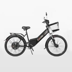 Painel digital em LCD com exibição de: indicador de nível de bateria, velocímetro, hodômetro, painel de tensão de bateria e parada (P)Acelerador na manoplaPedais: Pedal assistido (pedal system)Cesta dianteira com travaBanco ergonômico com molasItens inclusos: