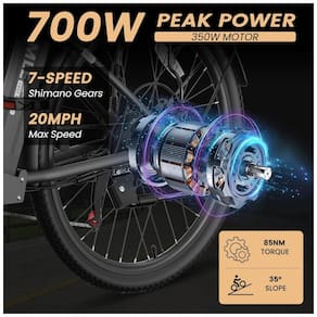 Potência máxima de 700 W e capacidade para subidas: Alimentada por um motor traseiro de 36 V e 350 W com potência máxima de 700 W, esta bicicleta elétrica supera facilmente colinas e terrenos acidentados. O sistema de 7 velocidades garante trocas suaves entre estradas planas e inclinadas, proporcionando uma condução potente e confiável.