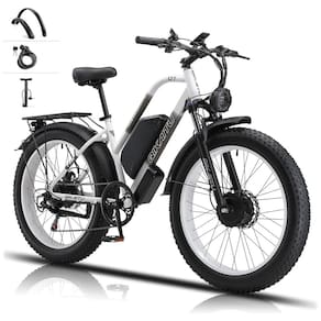 1. Bicicleta elétrica com motor duplo de 2000 W para adultos. Motores duplos sem escovas de 1000 W impulsionam esta e-bike de alta velocidade a 50 km/h. Alterne entre os modos de motor duplo/único para controle de velocidade ou maior alcance.