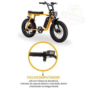Ciclocomputador: LCD com 5 Níveis de Assistência, indicador de carga de bateria e velocidade
