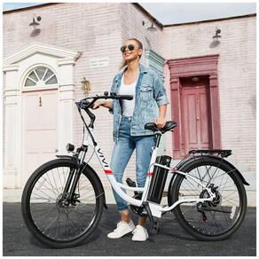 ?MATERIAL DE QUALIDADE PREMIUM?A bicicleta elétrica de 26" é feita de um quadro leve e resistente de aço carbono. As rodas dianteiras e traseiras são de liga de alumínio de dupla camada, proporcionando maior durabilidade e um passeio mais rápido com menos arrasto. O quadro baixo desta bicicleta cruiser facilita a subida e descida. O guidão largo e curvado para trás ajuda você a pedalar em uma posição natural e confortável, mesmo em percursos longos. Ideal para passeios casuais e confortáveis.