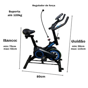 Conforto Personalizado Com regulagens precisas, ajuste a altura do guidão 98cm a 110cm , do banco 75cm a 92cm e a distância entre banco e guidão até 40cm para se adaptar perfeitamente ao seu corpo. Ideal para usuários de até 1,80m e até 120kg.