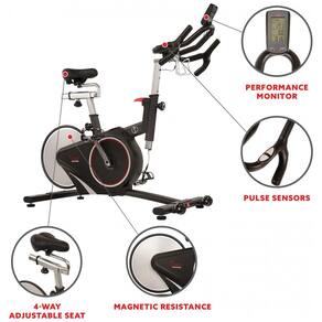 RESISTÊNCIA DE ACIONAMENTO DE CORREIA MAGNÉTICA O sistema de resistência magnética de acionamento de correia de 13 níveis oferece mudanças rápidas e confiáveis na resistência. O sistema de resistência magnética proporciona uma condução suave e responsiva, aumentando a resistência do campo magnético sobre o volante. O sistema de acionamento por correia de baixa manutenção resulta em uma experiência de bicicleta ergométrica praticamente silenciosa e estável. DISPLAY DIGITAL O robusto display digital multifuncional registra velocidade, velocidade média, velocidade máxima, cadência, rpm, cadência média, cadência máxima, distância, calorias, corrida e tempo. Meça sua cadência usando a função RPM no monitor. CADÊNCIA MÉDIA E CADÊNCIA MÁXIMA Monitore sua cadência média e máxima para atingir suas metas de treinamento à medida que você se move pelo sistema de resistência magnética de acionamento por correia de 13 níveis. Acompanhe e mantenha uma cadência preferida em uma ampla gama de mudanças de velocidade e resistência. SENSORES DE PULSO ERGONÔMICOS Para garantir que você exercite suas necessidades específicas, a bicicleta de ciclismo indoor SF B1709 vem equipada com sensores de pulso posicionados ergonomicamente que transmitem sua taxa de pulso para o monitor digital Marca: Não Informado