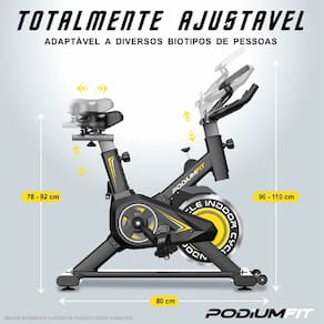 Quer pedalar sem sair de casa? Não está confortável com o número de ciclovias para se aventurar nas ruas da sua cidade? Então a Bicicleta PodiumFit S90 é ideal para você. Ela é confortável e segura, um ótimo equipamento para sua residência. Pedalar ajuda a queimar gorduras, fortalece os músculos e aumenta a resistência cardiovascular. Moderno Painel scan com informações de tempo, velocidade, distancia e calorias. Sistema de transmissão: Correia (movimentos suaves, silenciosos, sem impacto ou trancos) Controle de carga com níveis de intensidade que vão do mais leve ao mais intenso. Confortável assento com ajuste de altura e distância. Pedais com cinta para os pés, mais segurança nas pedaladas Rodas para auxiliar na locomoção Guidão ergonômico e emborrachado com regulagem de altura, maior firmeza e conforto DESIGN: Seu design foi desenvolvido para uma perfeita harmonização nos ambientes. SILENCIOSA: Esse modelo é ideal para a utilização em residências. Trata-se de um modelo extremamente silencioso. Material: Aço reforçado Tamanho montada: 91 x 46 x 110 cm ( C x L x A) Embalagem: 86 x 20 x 73 cm Regulagem da altura da parte frontal: 96 a 110 cm Regulagem da altura da parte traseira: 78 a 92 cm Distância entre o banco e o guidão: 40 cm Peso: 16 kg Peso máximo do usuário: 120 kg. Altura recomendada de usuários: De 1,40 a 1,80 m Garantia: 90 dias * Imagens meramente ilustrativas. Alguns itens são opcionais. Podem haver variações.