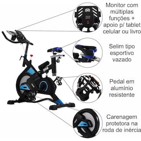 O equipamento também conta com um monitor com múltiplas funções, incluindo controle de pulso, que é medido através de um sensor no guidão. Além disso, o monitor exibe informações como tempo, velocidade, distância, calorias e odômetro, proporcionando um acompanhamento completo do seu treino.