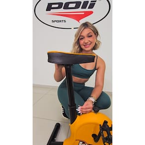 - Referência: 0283 - Marca: Poli Sports - Utilização Residencial - Confeccionada em Aço Carbono - Pintura epóxi na cor preta com carenagem amarela - Monitor com 5 Funções: velocidade, distância, tempo, caloria, scan - Sistema de Tração Mecânica - Regulagem de esforço manual - Regulagem de altura do banco - Guidão de apoio para os braços - Capacidade de peso do usuário de até 100kg - Garantia de 06 meses