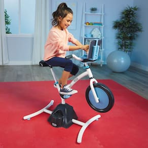 Equipamento de ginástica Little Tikes Pelican Explore & Fit Cycle Adjustable Play Fitness Bicicleta ergométrica com vídeos e alto-falante Bluetooth embutido, para crianças de 3 a 7 anos, branca e azul — VÍDEOS GRATUITOS DE AVENTURA PARA TREINADORES — Vídeos de fácil acesso no YouTube para uma divertida aventura visual. - AVENTURAS DE ÁUDIO INTEGRADAS — Emoção imediata para que você possa pedalar sem uma tela. - ALTO-FALANTE BLUETOOTH — Toque sua própria música e acompanhe a batida. - ASSENTOS E GUIDÕES AJUSTÁVEIS — Adequado para crianças de todos os tamanhos. - RESISTÊNCIA AJUSTÁVEL — Sempre adequada para crianças, mas ajuste a alavanca para um treino fácil ou desafiador.
