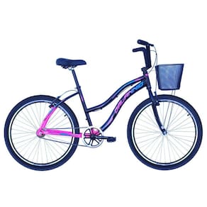 Bicicleta Feminina Aro 26 Beach em Alumínio Preto com Rosa